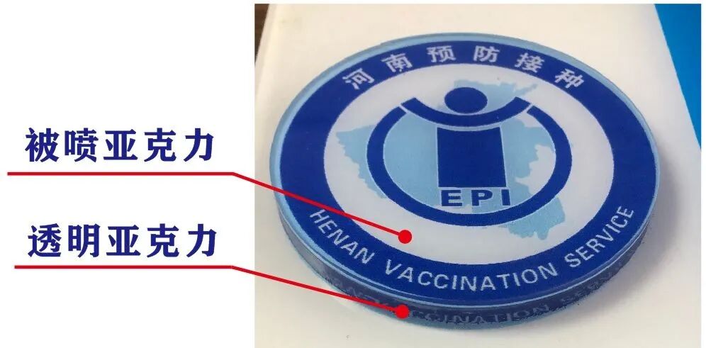 第一层被喷亚克力 第二层PVC 优点:制作成本低 缺点:PVC边是白色,稍稍影响效果