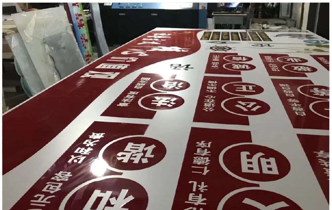 优点:效果好,带有亚克力特有的光泽,且画面喷在亚克力背面,反打正看,画面不怕剐蹭,颜色持久度非常好 不足:相较于前面两种工艺,成本略高,工期较长